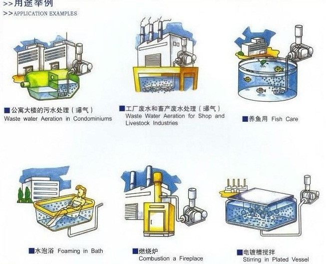 羅茨鼓風機有葉輪和機殼2個大部分組成。葉輪是鑲嵌在2跟葉輪軸上面,一根從動軸和一根主動軸組成,每根軸上有一個葉輪,而每個葉輪上有3個葉片連接而成故而叫做三葉。主動軸和從動軸靠軸承的固定和齒輪的咬合從而轉動壓縮。葉輪是靠精密的數控刨床加工而成,2個葉輪之間保持著一定的距離,但是互補碰撞。相對而言葉輪和機殼之間也存著一定的距離,從而轉動壓縮產出清潔的空氣。羅茨風機可以說是通用機械,當今社會在很多行業中都能用到羅茨風機。羅茨風機一般用在污水處理、環保、礦山、石油、化工 水泥、鑄造、食品、醫藥、造紙、氣力輸送、粉體顆粒輸送、化肥、建材、電力、煤炭、水產養殖等很多行業。礦山中用到羅茨風機:一般用于礦山的通風和礦山中礦石礦物的浮選。 粉體輸送往往是將羅茨風機裝配在一個可以輸送物料的簡單系統設備上,羅茨風機的高壓可以將物料通過管道輸送到所需要的地方,利用羅茨風機產出的高壓力可以將物料輸送到上千米的倉庫中,減少了人力的損耗。食品行業中羅茨風機的真空包裝系統,真空包裝在谷子、豆類等食品包裝中得應用,用在食品行業包裝中是一項重大的創造性應用。用了真空包裝的可抗機械壓力 減輕了震蕩,有利于長途的運輸又利于銷售。污水處理和環保中在羅茨風機污水處理曝氣的環節起到了關鍵的作用,目前一般設備無能代替和取代。國內羅茨風機在石油領域最先使用,隨著社會的發展和科技技術的創新,羅茨風機在今后的市場地位會越來越高,用途也將會越來越普遍。